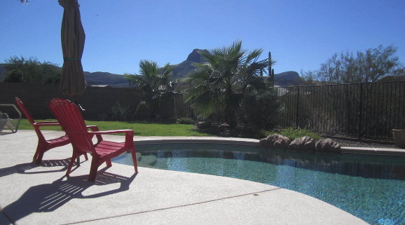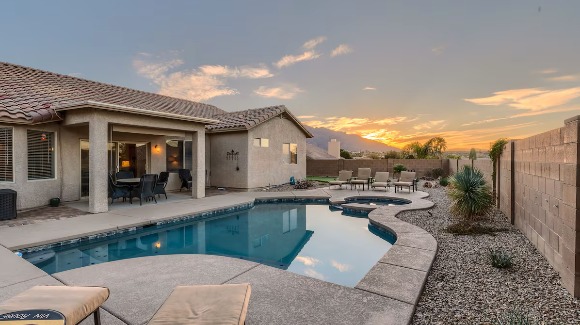 3 bd, 2 ba | Breathtaking sunset view with pool, lounge area and majestic mountains.